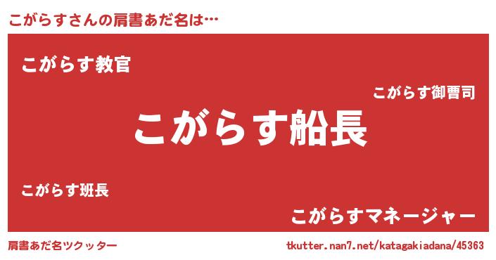 | 意味不明あだ名 | 『住所不定無職こがらす(13歳)』 |