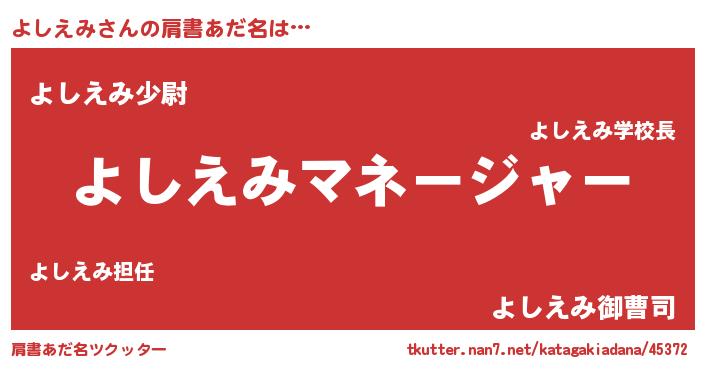 | 男性向けラノベタイトル風あだ名 | 『よしえみに滅ぼされるだけの簡単なお仕事です』 |