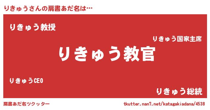 | 男性向けラノベタイトル風あだ名 | 『この素晴らしい世界にりきゅうを!』 |