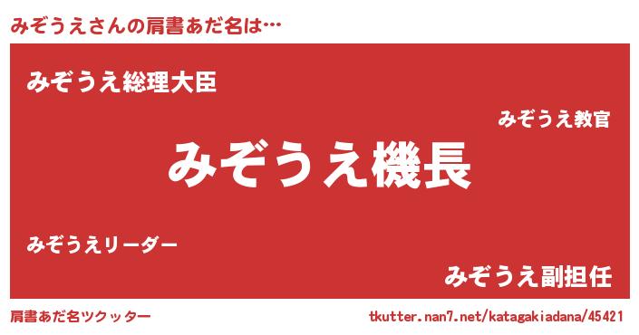 | ヒーロー風カッコイイあだ名 | 『ウルトラみぞうえマン』『ネオミゾウエ』 |