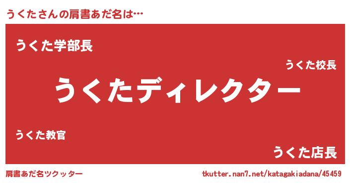 | 男性向けラノベタイトル風あだ名 | 『はたらくうくたさま!』『うくたの憂鬱』 |