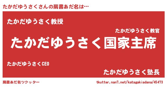 | ファンタジー風あだ名 | 『エターナルタカダユウサクー』 |
