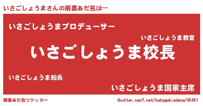 | ヒーロー風カッコイイあだ名 | 『ネオイサゴショウマ』『仮面イサダー』 |