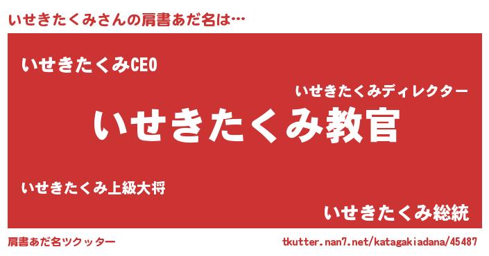 | 男性向けラノベタイトル風あだ名 | 『この素晴らしい世界にいせきたくみを!』 |