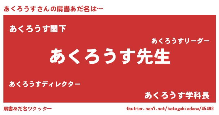 | 意味不明あだ名 | 『永久保存あくろうす』『自称あくろうす』 |