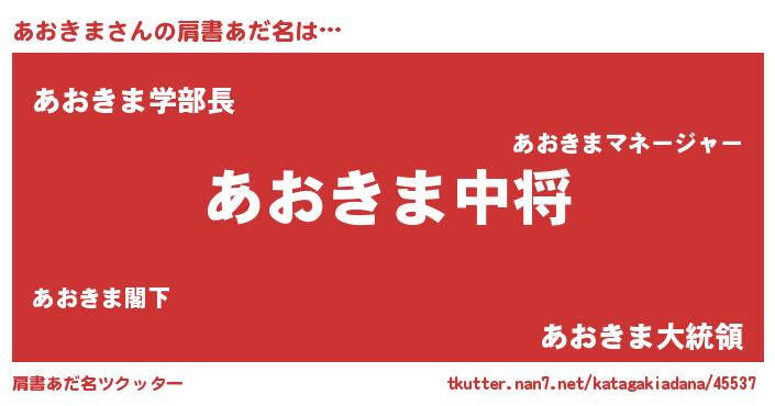 | 男性向けラノベタイトル風あだ名 | 『アオキマスレイヤー』 |