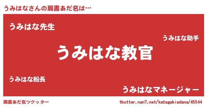| 意味不明あだ名 | 『住所不定無職うみはな(4歳)』 |
