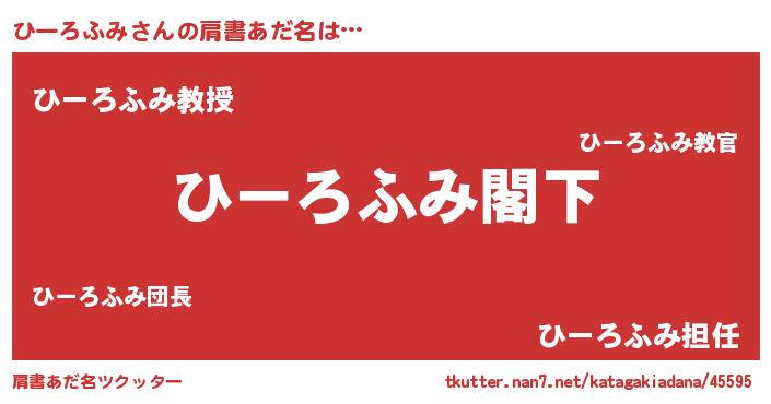 | 男性向けラノベタイトル風あだ名 | 『Re:ひーろふみから始める異世界生活』 |