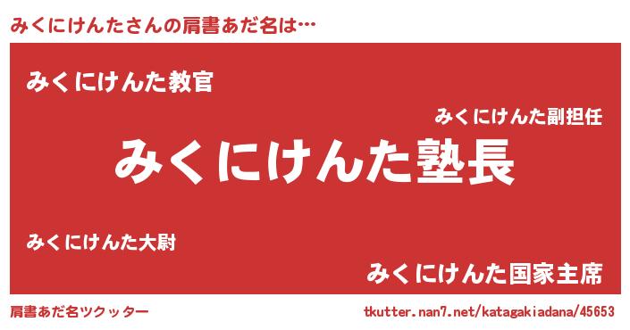| 意味不明あだ名 | 『とにかく怪しいみくにけんた』 |