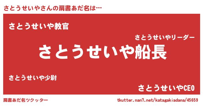 | ヒーロー風カッコイイあだ名 | 『仮面サトダー』『スーパーサトウセイヤ』 |