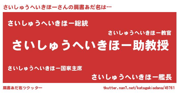 | ヒーロー風カッコイイあだ名 | 『友情の使者さいしゅうへいきほー』 |