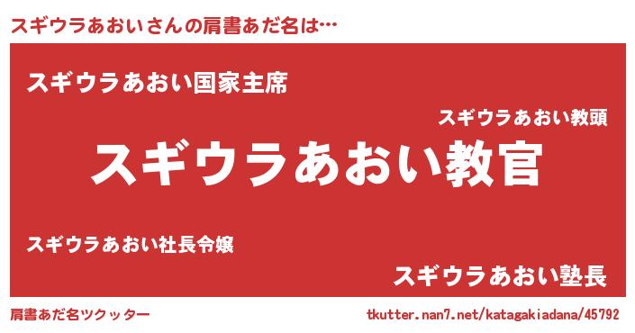 | 意味不明あだ名 | 『住所不定無職スギウラあおい(56歳)』 |