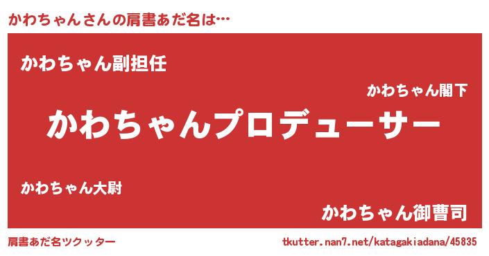 | 男性向けラノベタイトル風あだ名 | 『かわちゃんに滅ぼされるだけの簡単なお仕事です』 |