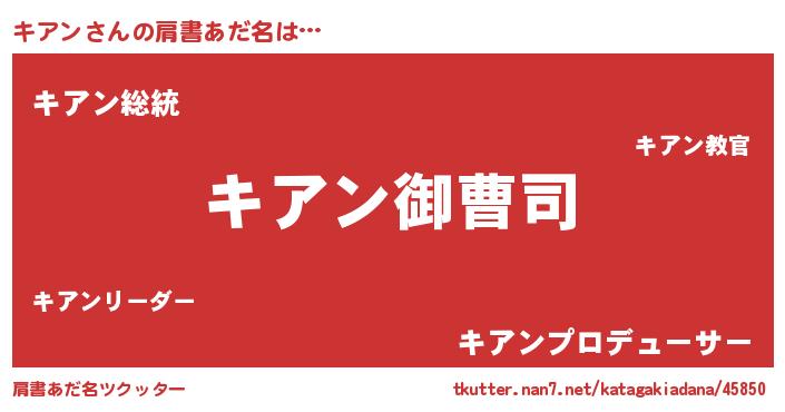 | 男性向けラノベタイトル風あだ名 | 『キアンの憂鬱』『はたらくキアンさま!』 |
