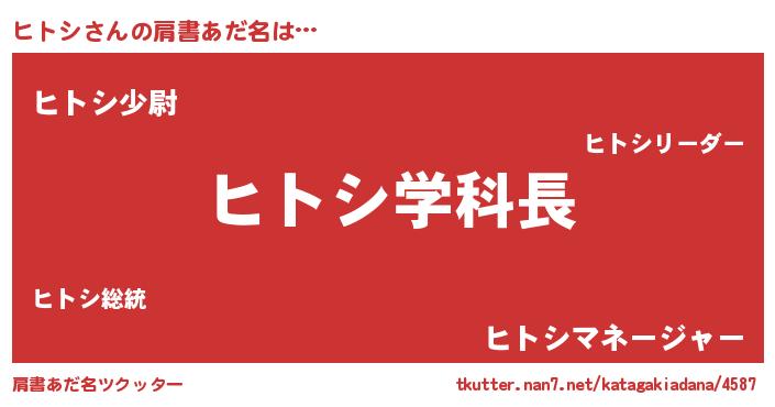 | 女子向けラノベタイトル風あだ名 | 『ヒトシ恋絵巻』『首の姫と首なしヒトシ』 |