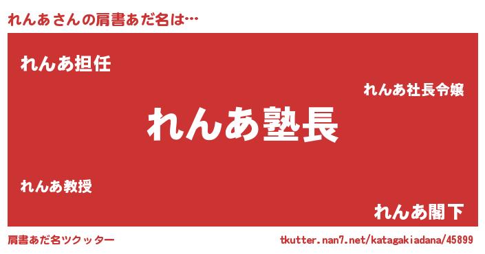 | 意味不明あだ名 | 『とにかく怪しいれんあ』『自称れんあ』 |