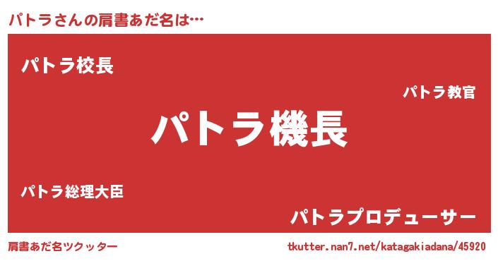 | 意味不明あだ名 | 『永久保存パトラ』『パトラフォーエバー』 |