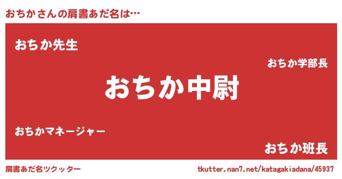 | 男性向けラノベタイトル風あだ名 | 『おちか~年齢イコール彼女いない歴の魔法使い~』 |