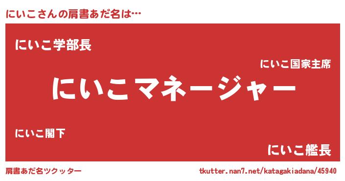| 欧米人風あだ名 | 『アンジェラ・にいこ』『ダニエルにいこ』 |