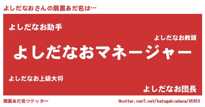 | 男性向けラノベタイトル風あだ名 | 『よしだなおに滅ぼされるだけの簡単なお仕事です』 |