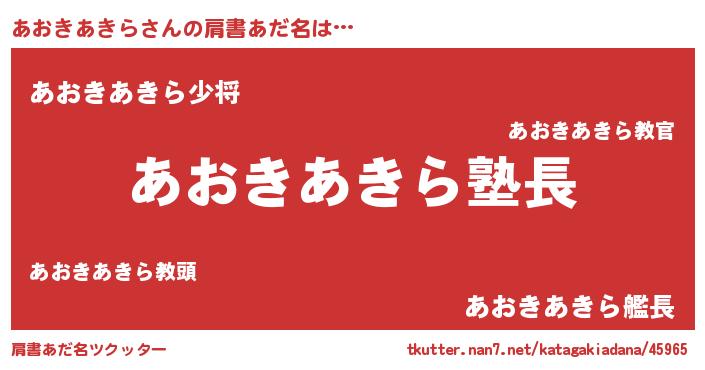| 意味不明あだ名 | 『とにかく怪しいあおきあきら』 |