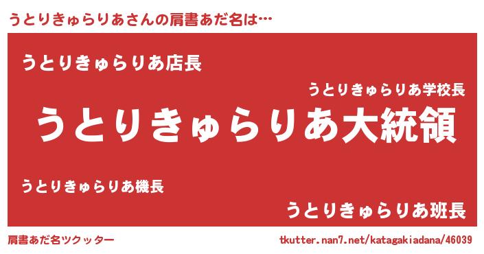 | 男性向けラノベタイトル風あだ名 | 『やはりうとりきゅらりあの青春ラブコメはまちがっている 』 |