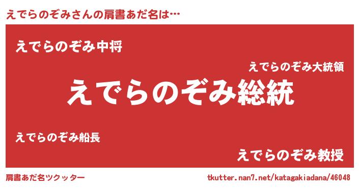 | 男性向けラノベタイトル風あだ名 | 『Re:えでらのぞみから始める異世界生活』 |