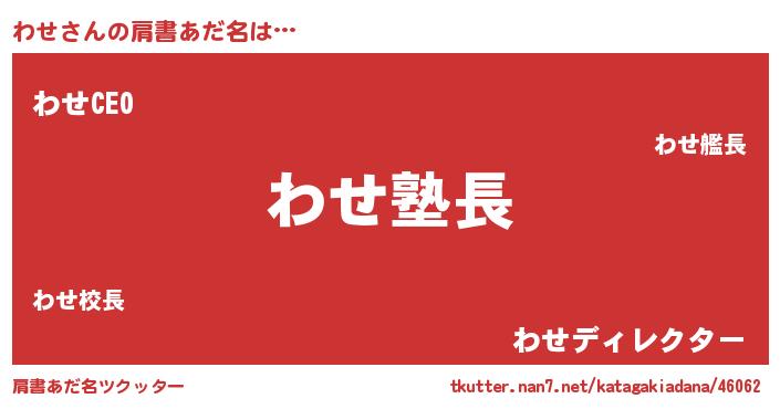 | ヒーロー風カッコイイあだ名 | 『幻影騎士ワセ』『スーパーワセ』 |