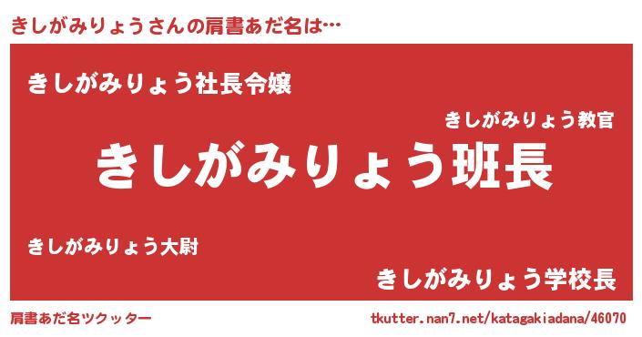 ポケモン風あだ名 | 『ヒキシガミリョウ』『キシチュウ』 |