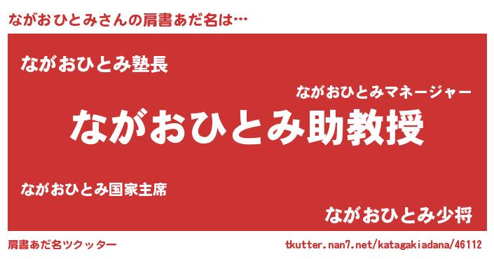 | 男性向けラノベタイトル風あだ名 | 『ノーゲーム・ノーナガオヒトミ』 |