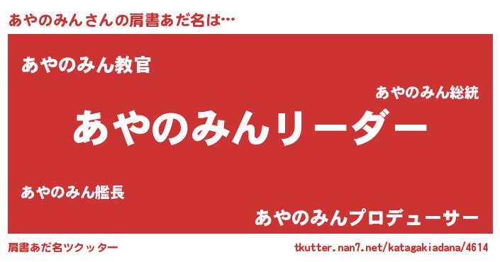 | 胡散臭い通販商品みたいなあだ名 | 『信頼と実績のペンダント…その名も「あやのみん」』 |