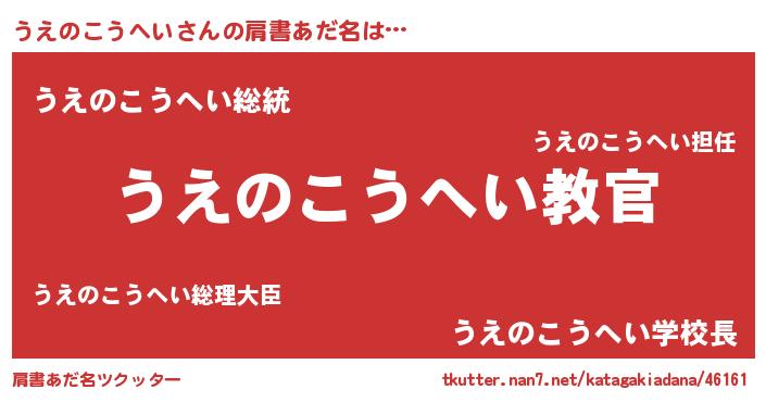 | 男性向けラノベタイトル風あだ名 | 『魔弾の王とうえのこうへい』 |