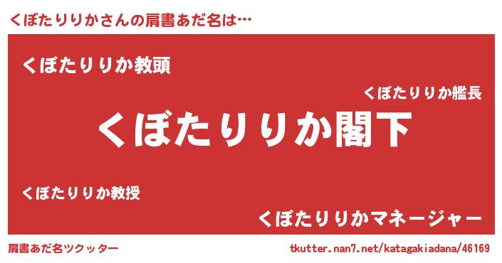 | 男性向けラノベタイトル風あだ名 | 『Re:くぼたりりかから始める異世界生活』 |