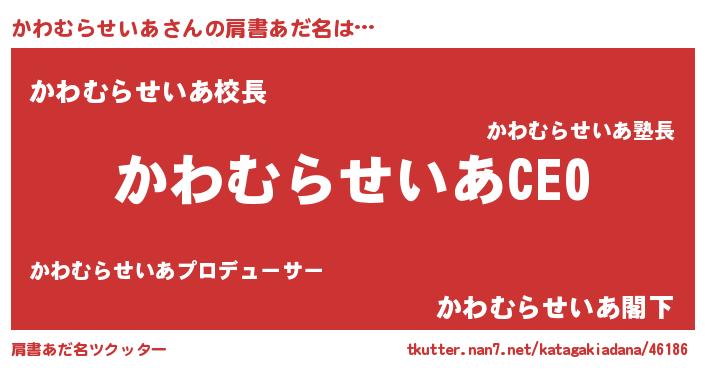 | 男性向けラノベタイトル風あだ名 | 『かわむらせいあの憂鬱』 |