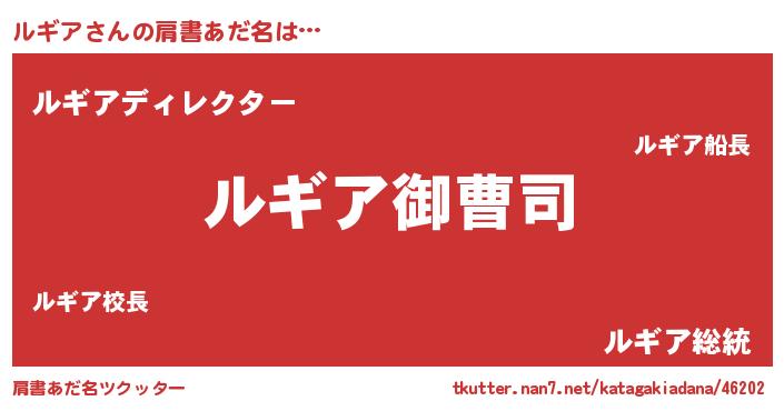 | 女子向けラノベタイトル風あだ名 | 『ルギア姫と円卓の騎士』 |