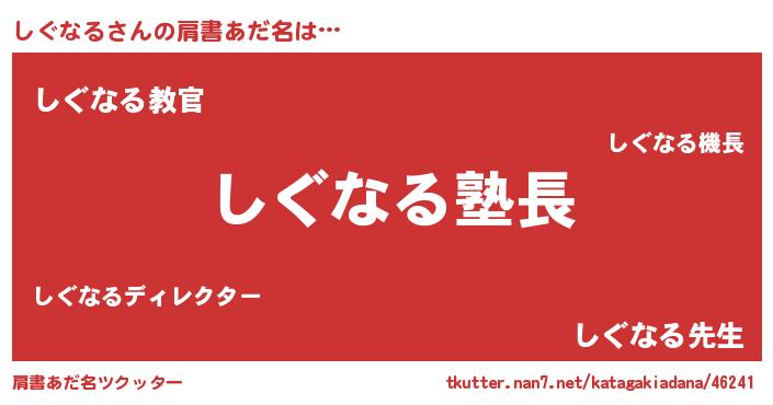 | 意味不明あだ名 | 『とにかく怪しいしぐなる』 |