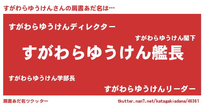 | 意味不明あだ名 | 『とにかく怪しいすがわらゆうけん』 |