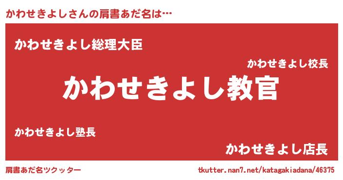 | 意味不明あだ名 | 『住所不定無職かわせきよし(39歳)』 |