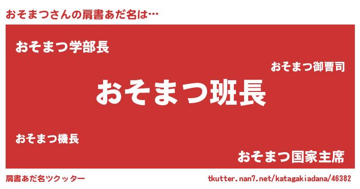 | 意味不明あだ名 | 『とにかく怪しいおそまつ』 |