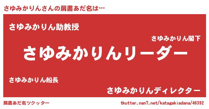 | 男性向けラノベタイトル風あだ名 | 『ダンジョンにさゆみかりんを求めるのは間違っているだろうか』 |