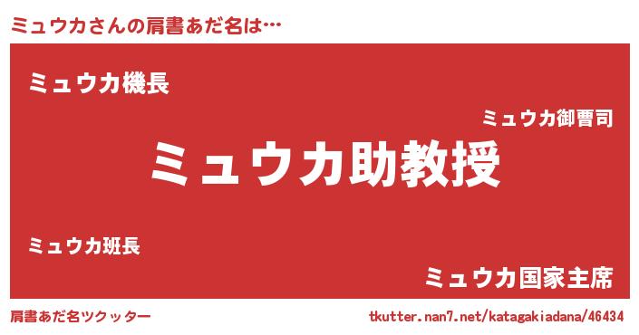 | 女子向けラノベタイトル風あだ名 | 『ミュウカ恋絵巻』『ミュウカ伯爵の花嫁』 |