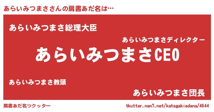 | 男性向けラノベタイトル風あだ名 | 『あらいみつまさの憂鬱』 |