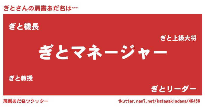 | 欧米人風あだ名 | 『アンジェラ・ぎと』『ウサインぎと』 |