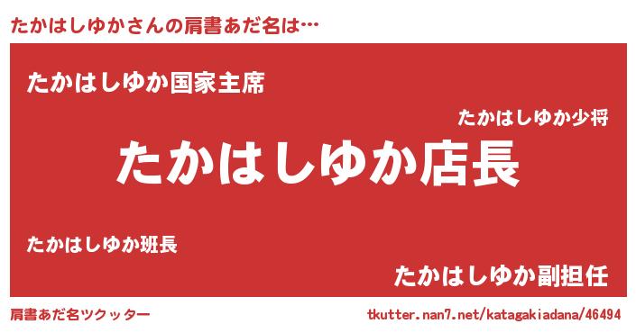 | 恥ずかしいあだ名 | 『プリティーたかはしゆか』『たかっちょ』 |