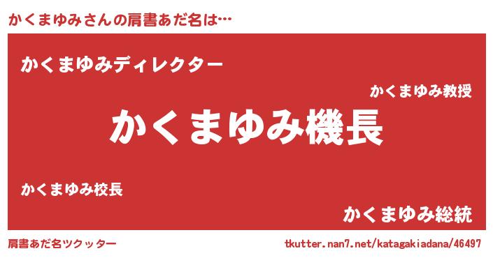 | 意味不明あだ名 | 『自称かくまゆみ』『永久保存かくまゆみ』 |