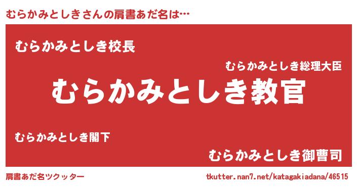 | 女子向けラノベタイトル風あだ名 | 『乙女ゲームの破滅フラグしかない悪役むらかみとしきに転生してしまった…』 |