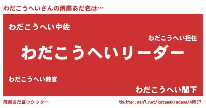 | ポケモン風あだ名 | 『ヒワダコウヘイ』『ワダキング』 |