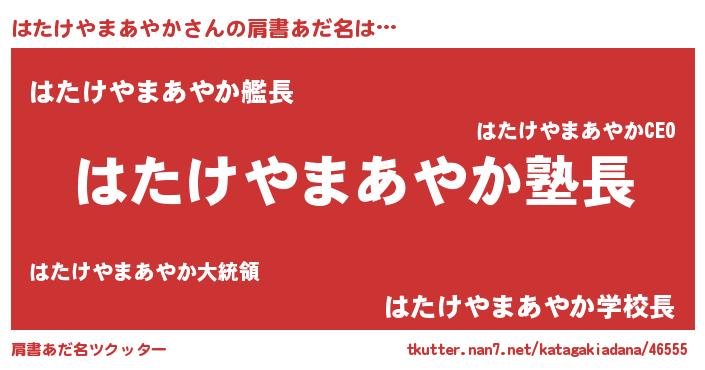 | 女子向けラノベタイトル風あだ名 | 『はたけやまあやか様がみてる』 |