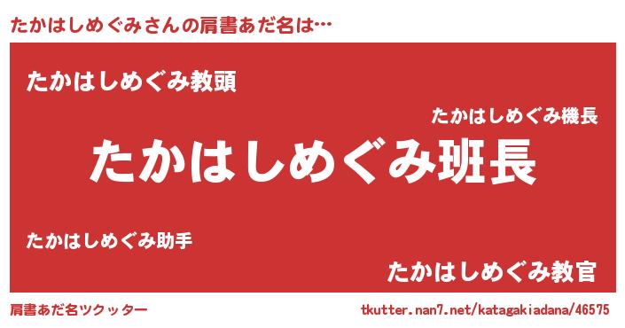 | 女子向けラノベタイトル風あだ名 | 『たかはしめぐみは平凡を望む』 |