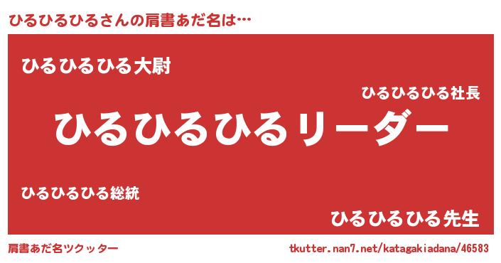 | 女子向けラノベタイトル風あだ名 | 『ひるひるひるの卵を拾いまして』 |